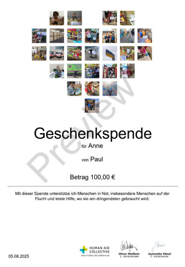 2. Gestaltung der Urkunde: Ich möchte meine Spende verschenken.